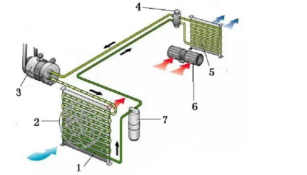 1£ÀäÄýÆ÷ 2£ÀäÄý·çÉÈ 3£µç´ÅÀëºÏÆ÷¼°Ñ¹Ëõ»ú 4£ÅòÕÍ·§5£Õô·¢Æ÷ 6£¹Ä·ç»ú 7£ÖüÒº¸ÉÔïÆ÷